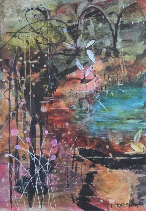 Nikki is a contemporary painter based in Far North Queensland, where the colour, heat, and energy of tropical life continually find their way into her work. Her paintings are shaped by rhythm, instinct, and layering, and by a deep connection to the natural world around her, from dense rainforest and tangled growth to dry creek beds, seed pods, shifting light, and her eternal fascination with flowers and colour.