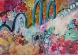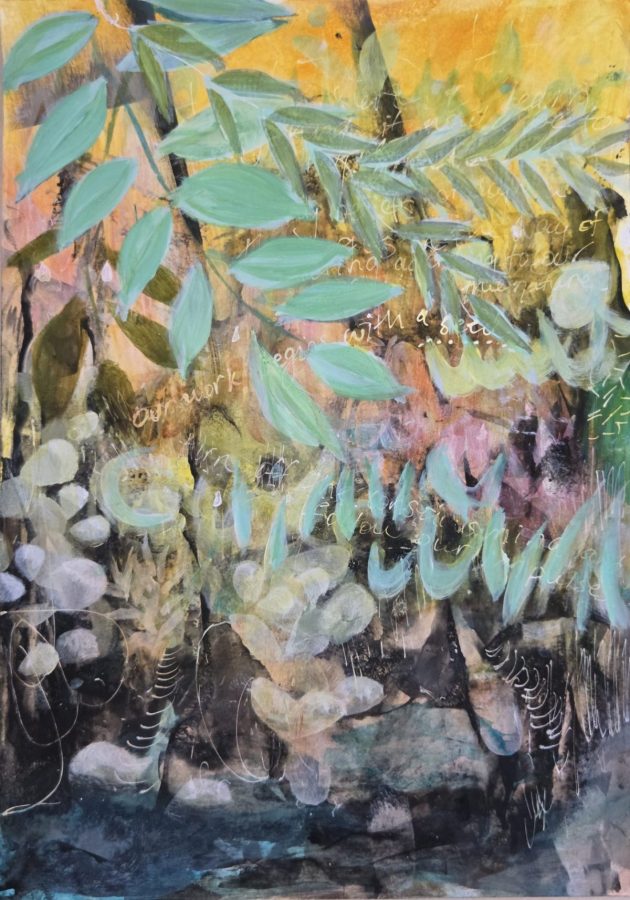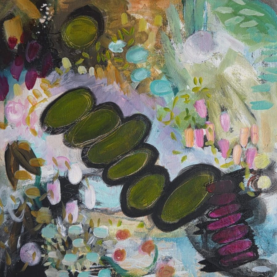 Her work sits within contemporary painting, though it often carries traces of landscape, foliage, memory, weather, and language. She is drawn to pieces that feel alive, paintings that hold energy and atmosphere rather than spelling everything out. Much of her work is about suggestion, feeling, and the beauty of what is partially hidden. She enjoys the tension between the wild and the deliberate, and in making work that feels both intuitive and resolved.