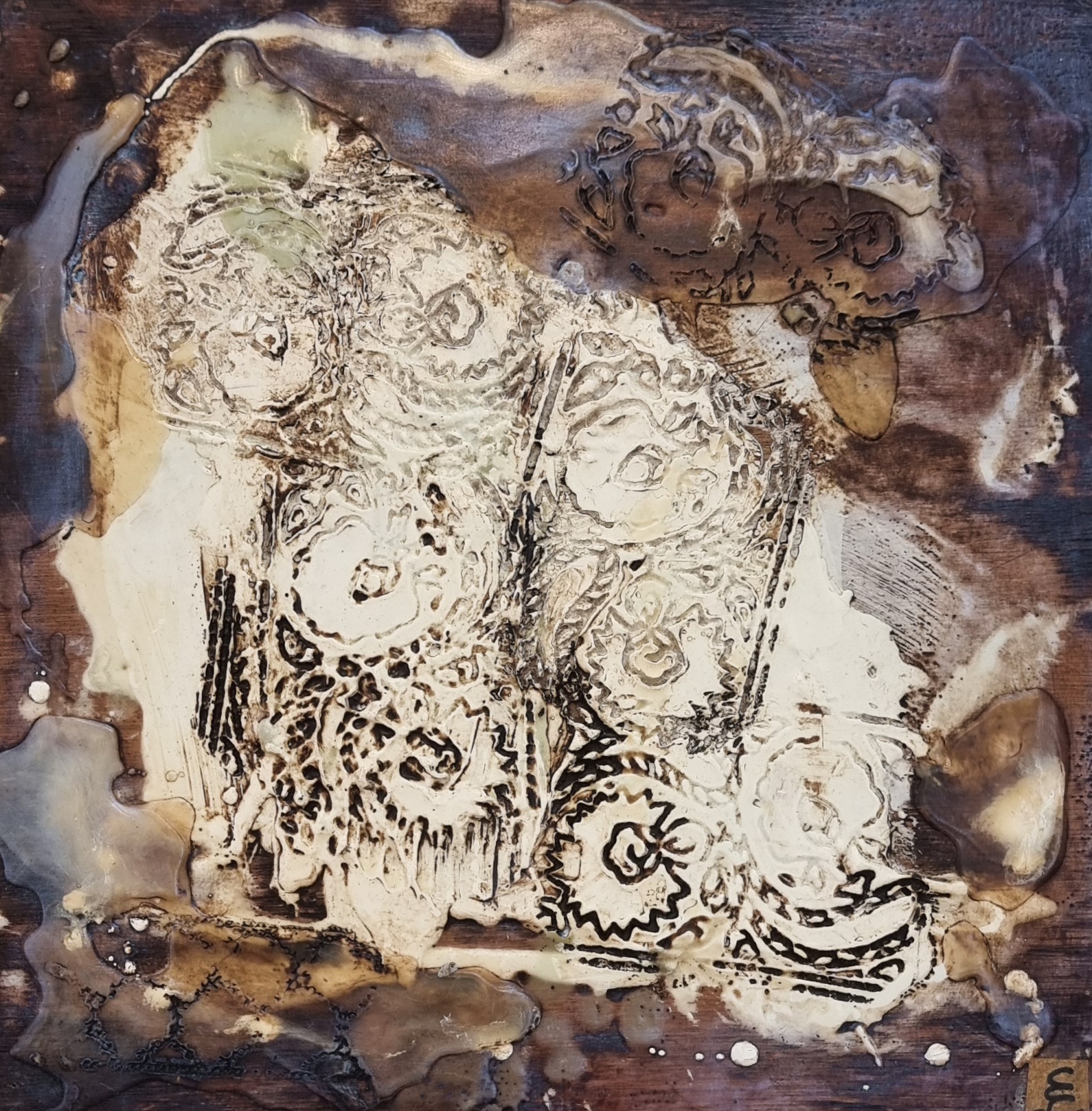 Wheels of Time Oil Encaustic on timber 90 x 50 cm